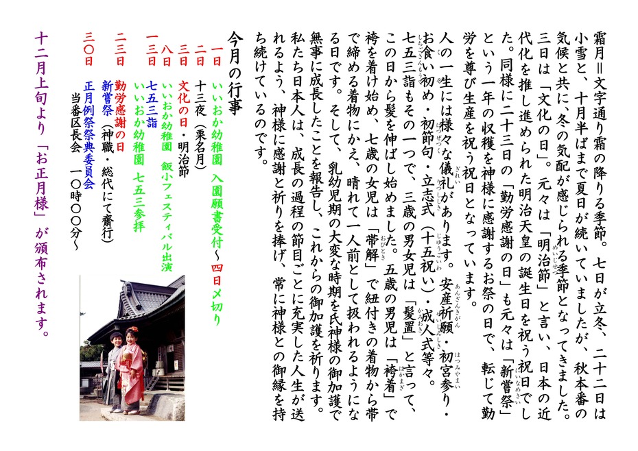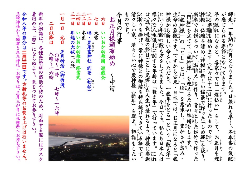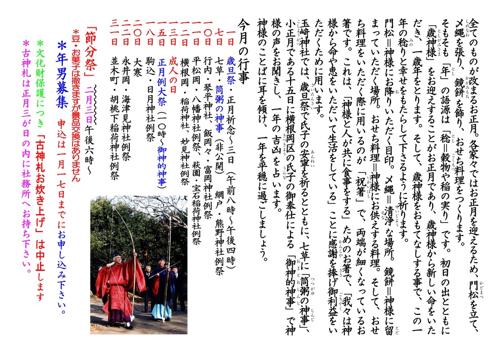 *古神札は正月三が日の内に社務所へお持ち下さい。