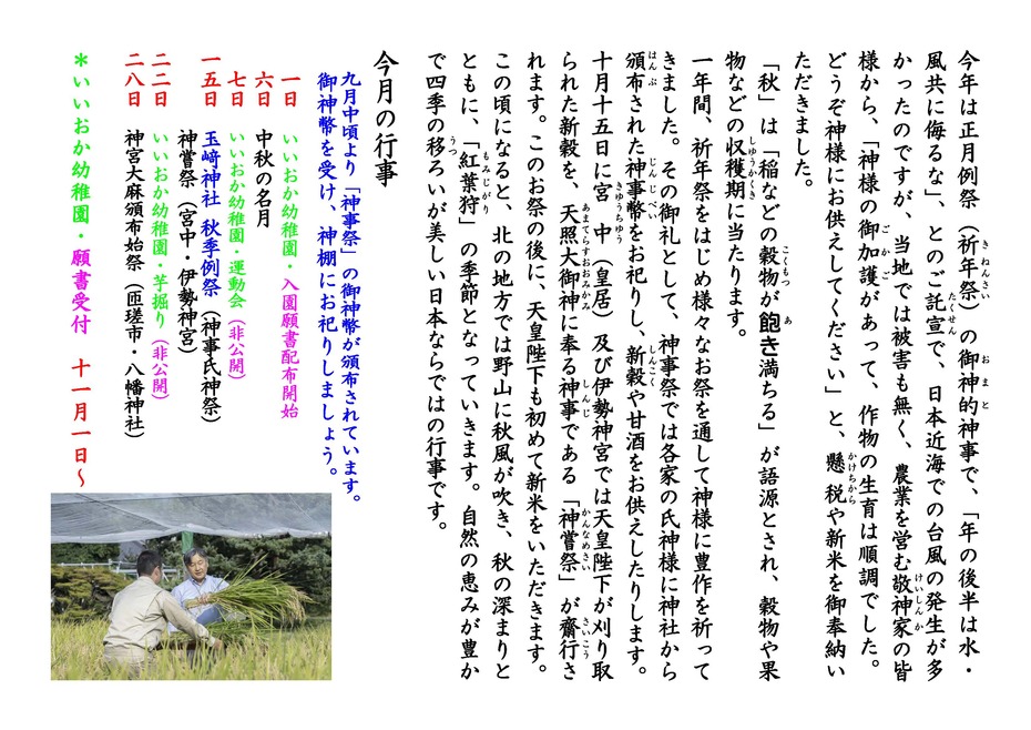 一一日 平松岡・八幡神社例祭、萩園・宝石稲荷神社例五